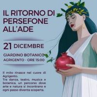 Si terrà domenica 21 dicembre 2025 alle ore 15 presso il Giardino Botanico di Agrigento, “Il ritorno di Persefone all’Ade”. Un progetto culturale ideato da Archeoclub d’Italia – sede di Agrigento, che propone un’esperienza immersiva tra arte, natura e memoria collettiva. Ispirato al mito di Demetra e Persefone, profondamente connesso alla spiritualità dell’antica Akragas, l’evento si svolge negli spazi del…