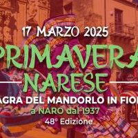 Si terrà lunedì 17 marzo 2025 a Naro la “Primavera Narese – Sagra del Mandorlo in Fiore di Naro”. Pochi sanno che la Sagra del Mandorlo in Fiore è nata proprio a Naro nel 1937 per volontà del conte Gaetani ( leggi la storia della Festa del Mandorlo in Fiore). Durante i festeggiamenti, che vedranno la partecipazione dei gruppi folk…